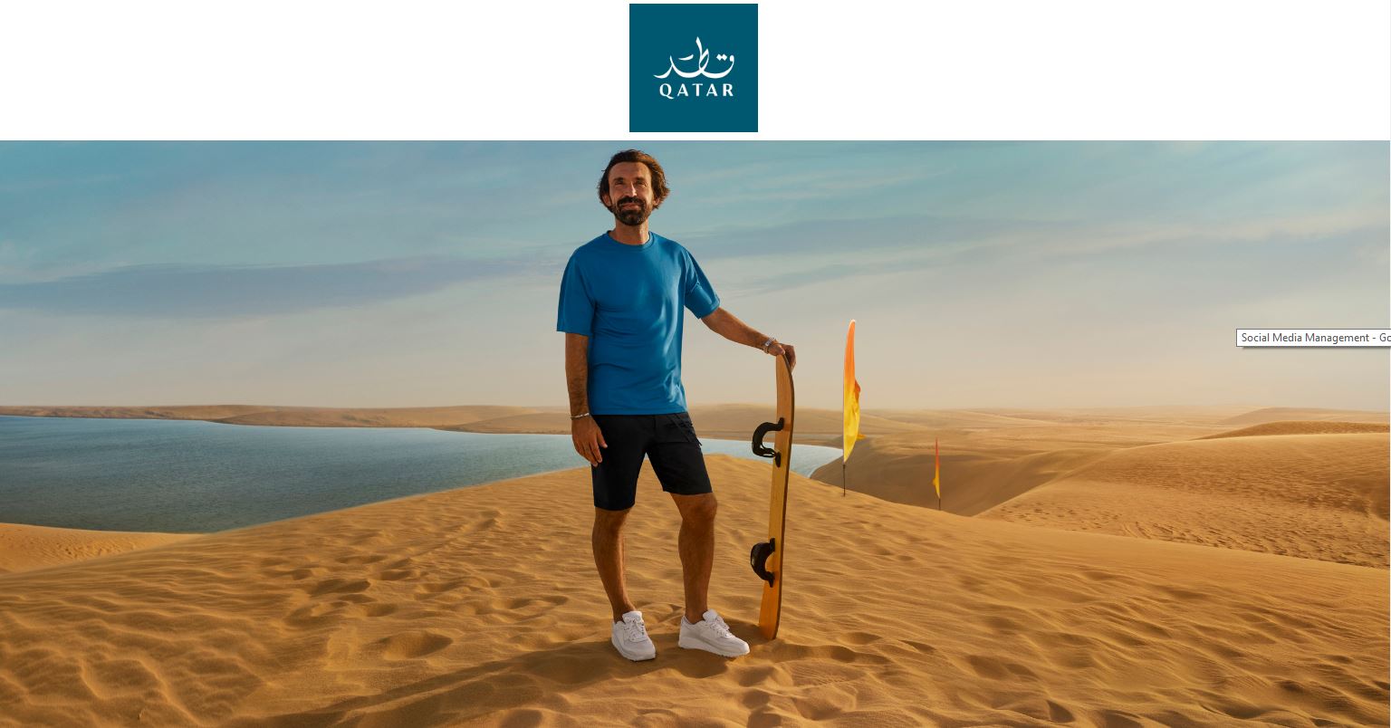 In una serie di pubblicità umoristiche, gli spettatori vedono Pirlo vivere diverse avventure in Qatar, dal sandboarding sulle dune del deserto del Mare Interno, all'immersione nella cultura del Museo di Arte Islamica, fino al kitesurfing nel nuovo resort del Paese, Fuwairit Kite Beach.